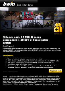 TI BASTA SPEDIRCI LA TUA E-MAIL CON LA RICHIESTA DI POTER OTTENERE IL BONUS BWIN, NOI SAREMO BEN LIETI DI INVIARTELO!!