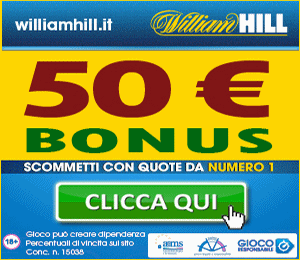 Gioca con William Hill le partite del Mondiali 2014, ti offre un Bonus di 50 Euro all'iscrizione e la certezza delle migliori quote in Italia, clicca sul link e digita il codice promo (ITA50) per ottenerlo!